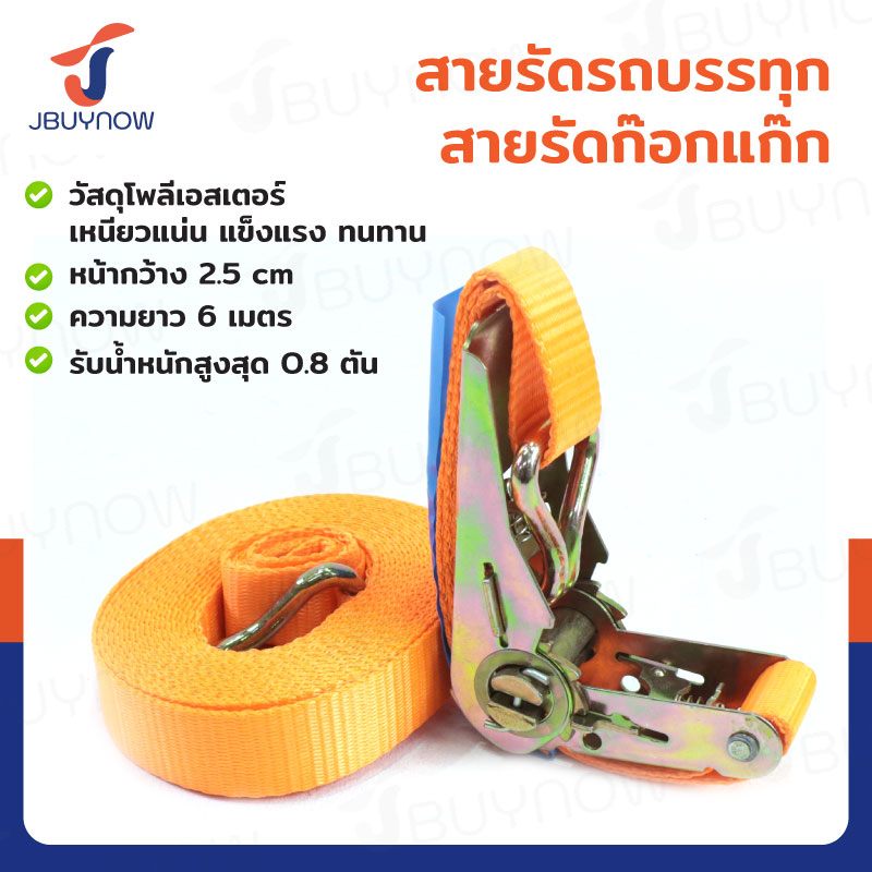 สายรัดรถบรรทุก สายรัดก๊อกแก๊ก 0.8 ตัน ยาว 6 เมตร JBUYNOW 0.8T*6M