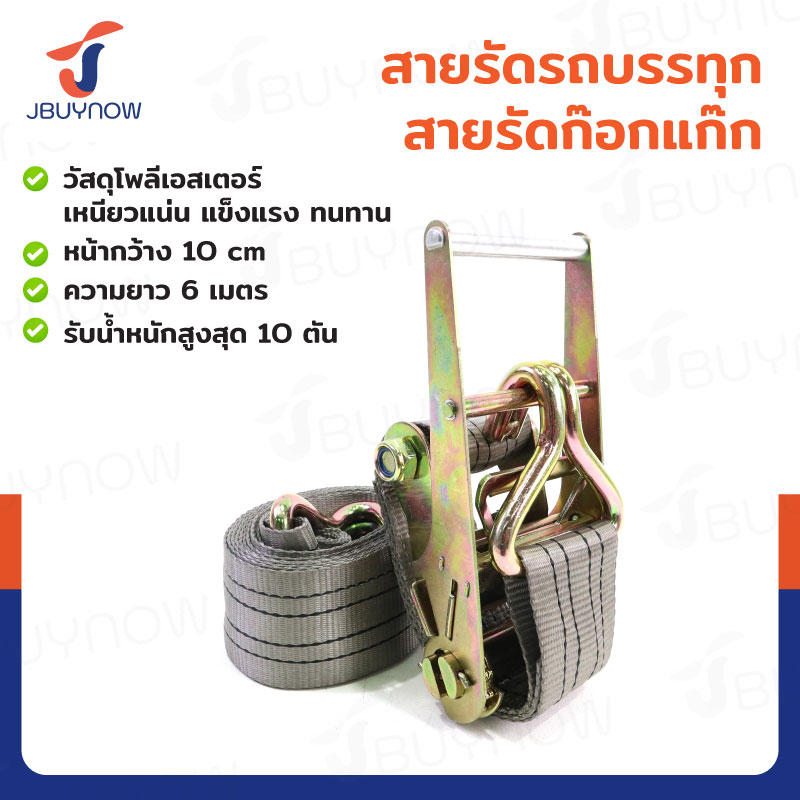 สายรัดรถบรรทุก สายรัดก๊อกแก๊ก 10 ตัน ยาว 6 เมตร JBUYNOW 10T*6M(100)