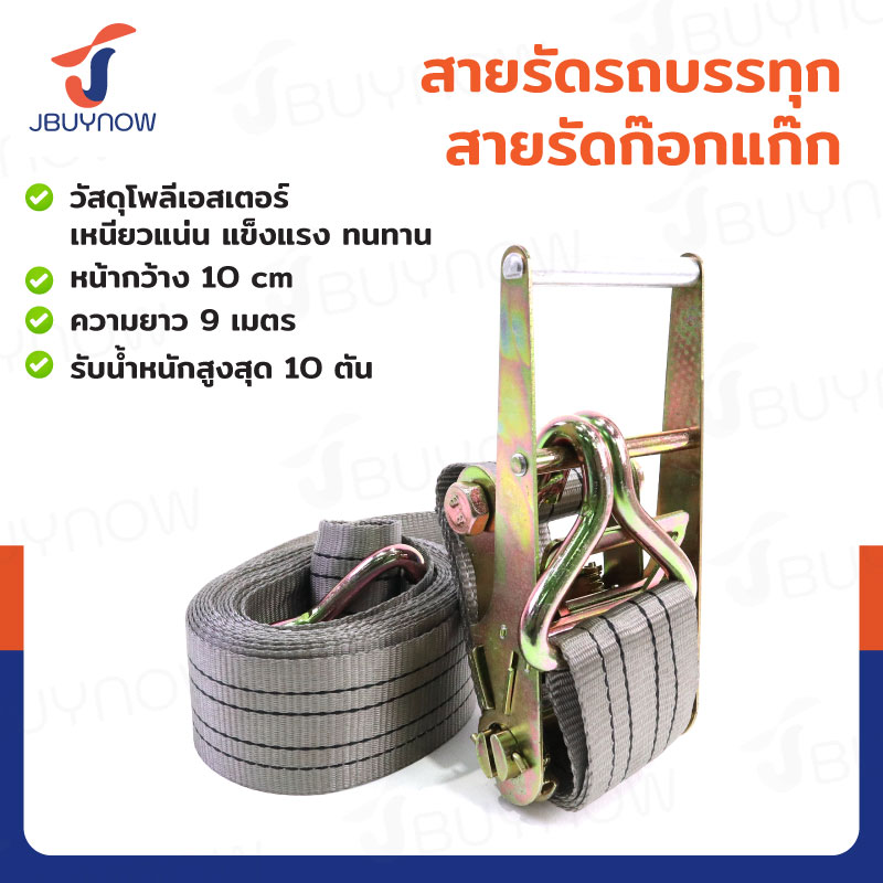 สายรัดรถบรรทุก สายรัดก๊อกแก๊ก 10 ตัน ยาว 9 เมตร JBUYNOW 10T*9M(100)