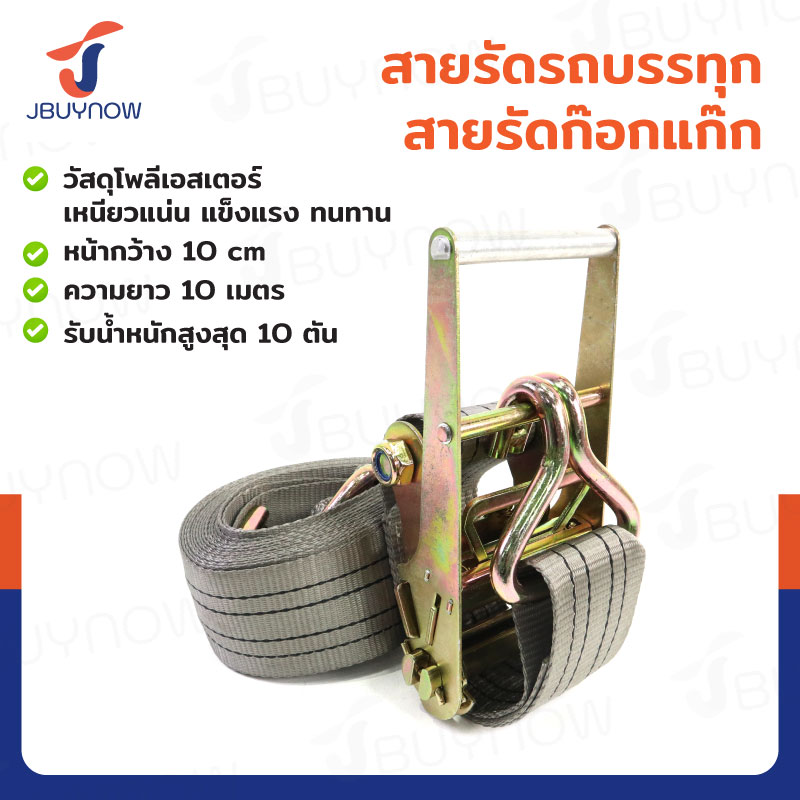 สายรัดรถบรรทุก สายรัดก๊อกแก๊ก 10 ตัน ยาว 10 เมตร JBUYNOW 10T*10M(100)
