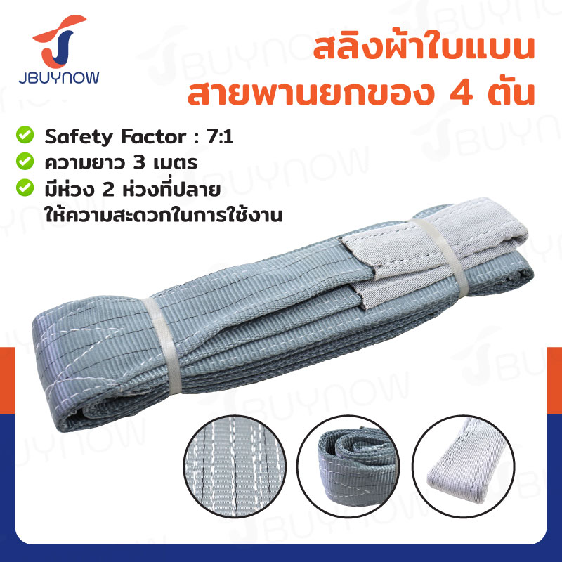 สลิงผ้าใบแบน สายพานยกของ 4 ตัน ยาว 3 เมตร (เซฟตี้ 7:1 มีใบเซอร์) JBUYNOW