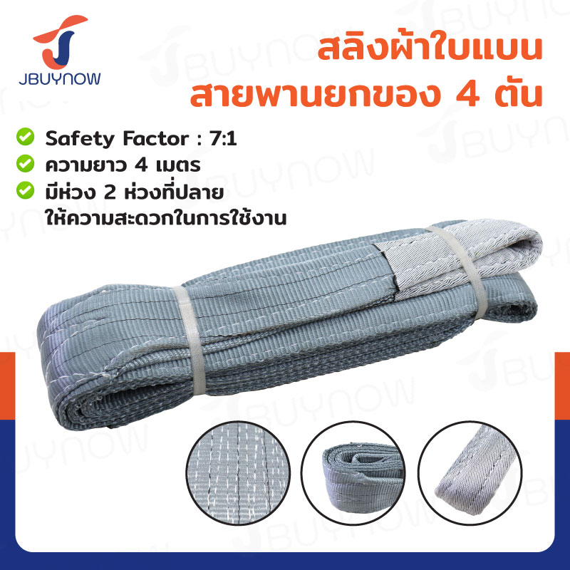 สลิงผ้าใบแบน สายพานยกของ 4 ตัน ยาว 4 เมตร (เซฟตี้ 7:1 มีใบเซอร์) JBUYNOW