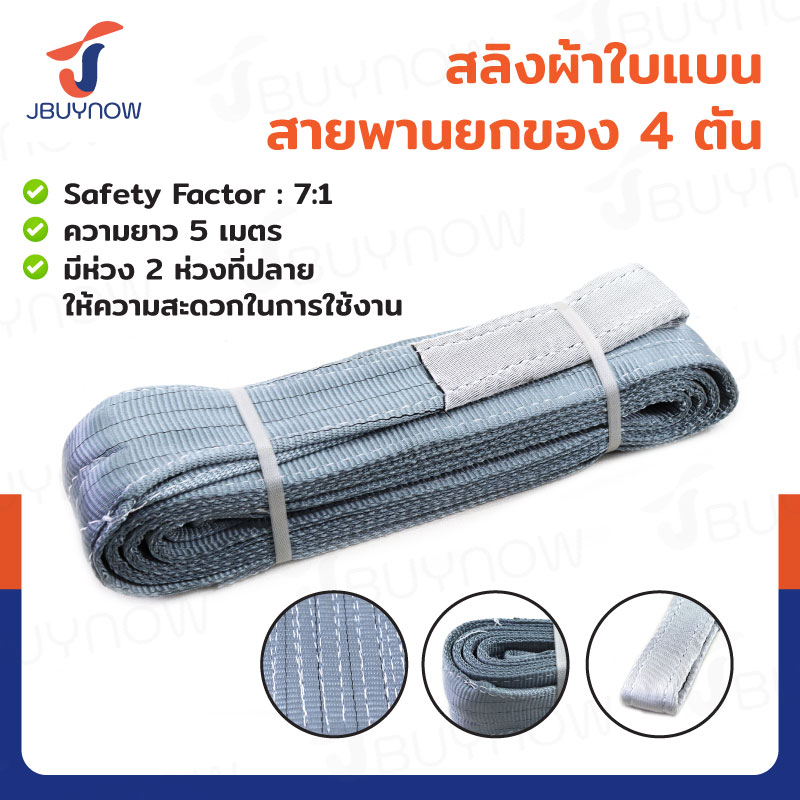 สลิงผ้าใบแบน สายพานยกของ 4 ตัน ยาว 5 เมตร (เซฟตี้ 7:1 มีใบเซอร์) JBUYNOW