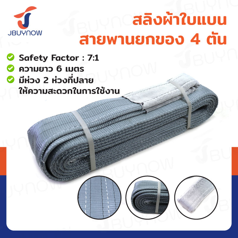 สลิงผ้าใบแบน สายพานยกของ 4 ตัน ยาว 6 เมตร (เซฟตี้ 7:1 มีใบเซอร์) JBUYNOW