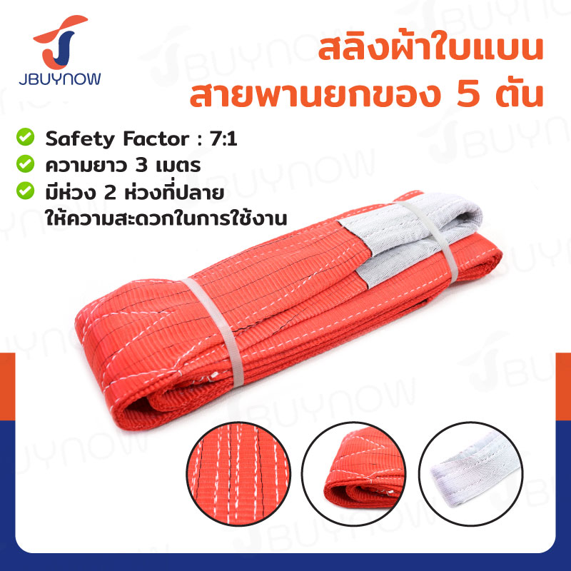สลิงผ้าใบแบน สายพานยกของ 5 ตัน ยาว 3 เมตร (เซฟตี้ 7:1 มีใบเซอร์) JBUYNOW