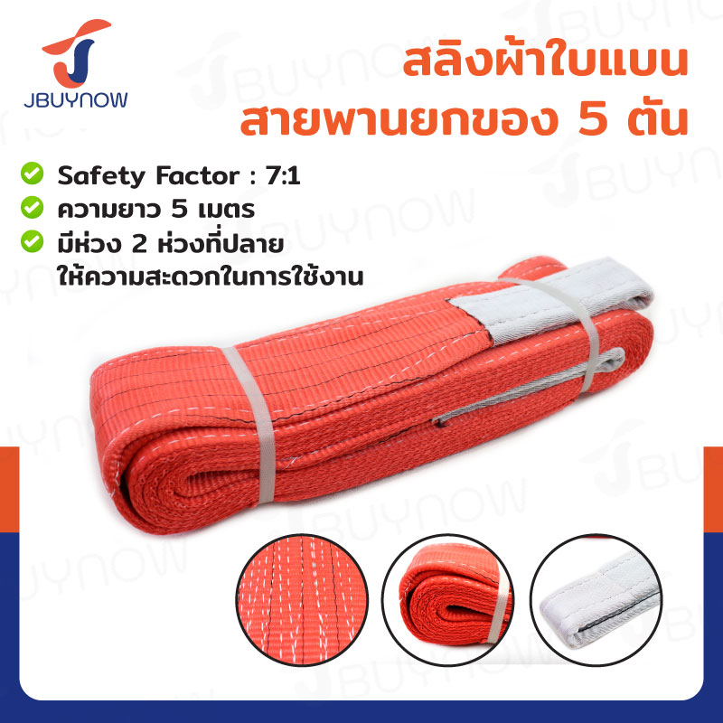 สลิงผ้าใบแบน สายพานยกของ 5 ตัน ยาว 5 เมตร (เซฟตี้ 7:1 มีใบเซอร์) JBUYNOW