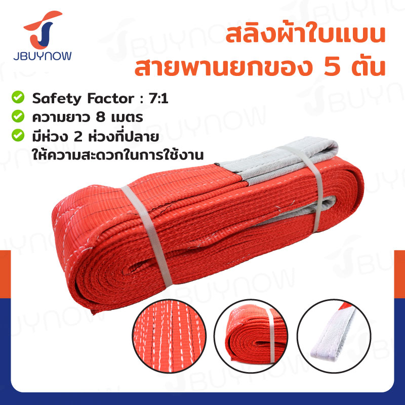 สลิงผ้าใบแบน สายพานยกของ 5 ตัน ยาว 8 เมตร (เซฟตี้ 7:1 มีใบเซอร์) JBUYNOW