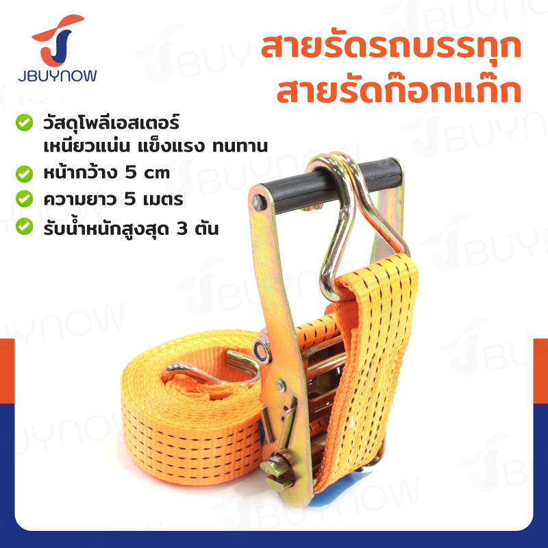 สายรัดรถบรรทุก สายรัดก๊อกแก๊ก 3 ตัน ยาว 5 เมตร JBUYNOW 3T*5M(50)