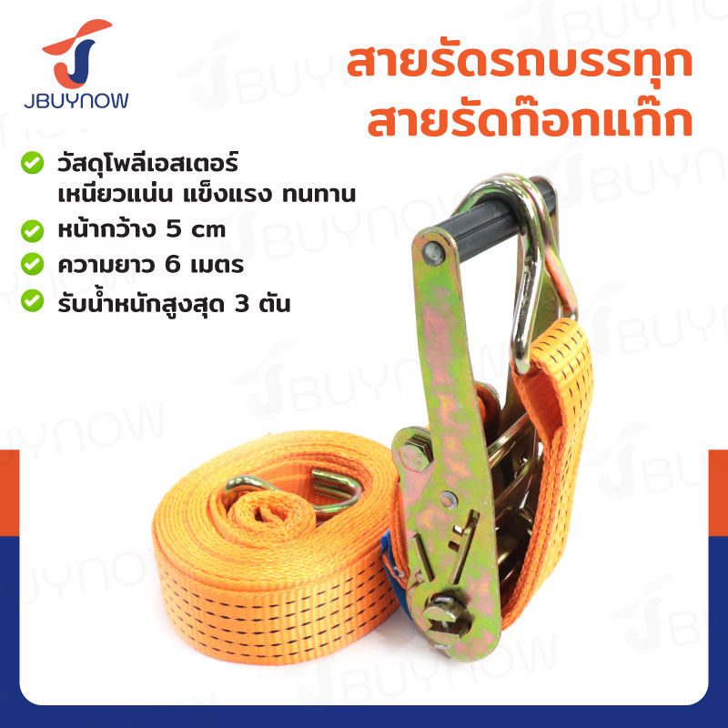 สายรัดรถบรรทุก สายรัดก๊อกแก๊ก 3 ตัน ยาว 6 เมตร JBUYNOW 3T*6M(50)
