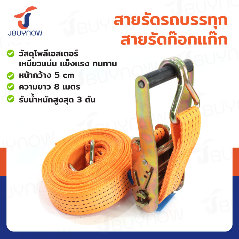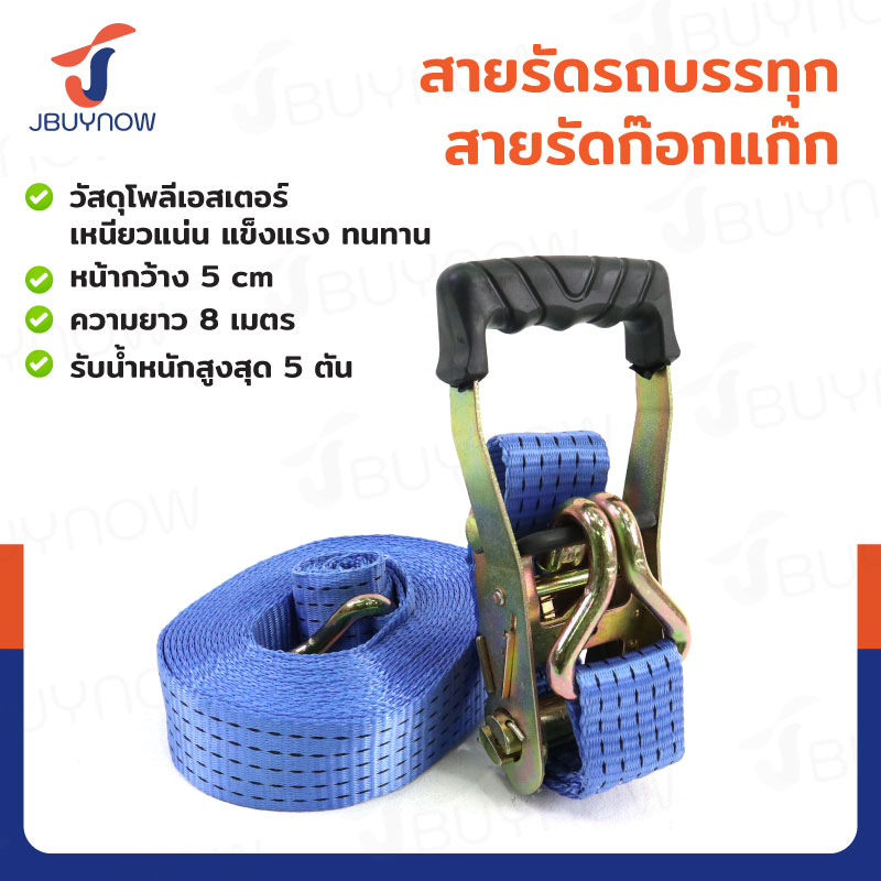 สายรัดรถบรรทุก สายรัดก๊อกแก๊ก 5 ตัน ยาว 8 เมตร JBUYNOW 5T*8M(50)