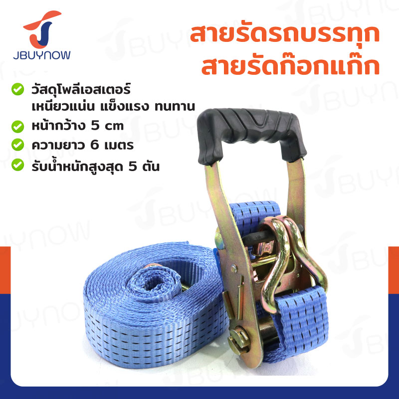 สายรัดรถบรรทุก สายรัดก๊อกแก๊ก 5 ตัน ยาว 6 เมตร JBUYNOW 5T*6M(50)