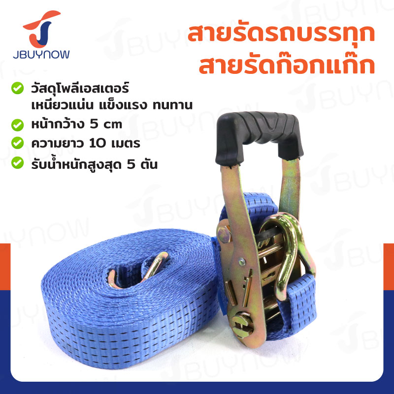 สายรัดรถบรรทุก สายรัดก๊อกแก๊ก 5 ตัน ยาว 10 เมตร JBUYNOW 5T*10M(50)