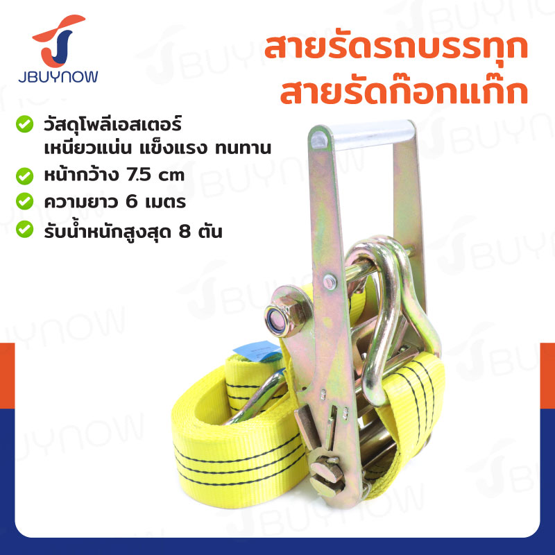 สายรัดรถบรรทุก สายรัดก๊อกแก๊ก 8 ตัน ยาว 6 เมตร JBUYNOW 8T*6M(75)