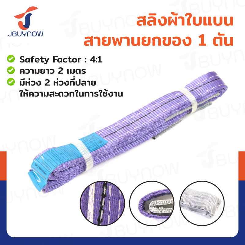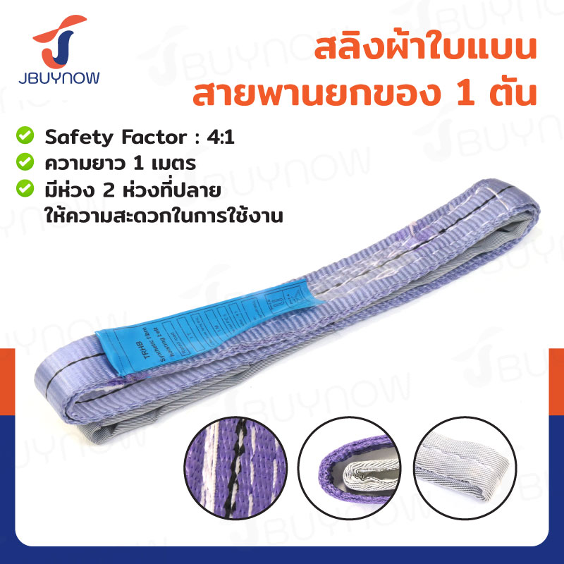 สลิงผ้าใบแบน สายพานยกของ (เซฟตี้ 4:1 มีใบเซอร์) 1 ตัน ยาว 1 เมตร JBUYNOW 1Tx1M