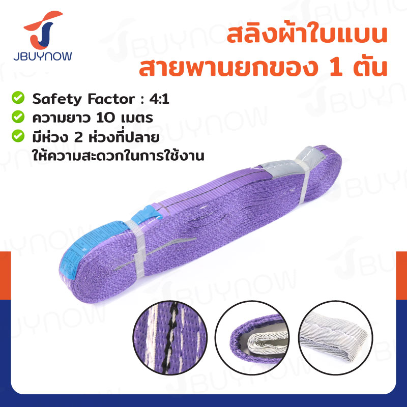 สลิงผ้าใบแบน สายพานยกของ (เซฟตี้ 4:1 มีใบเซอร์) 1 ตัน ยาว 10 เมตร JBUYNOW 1Tx10M