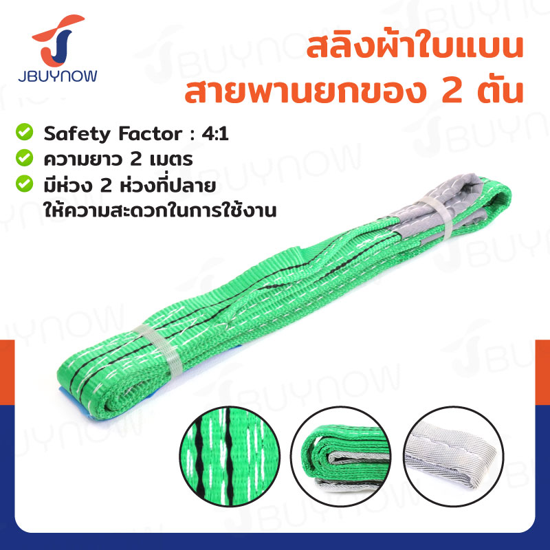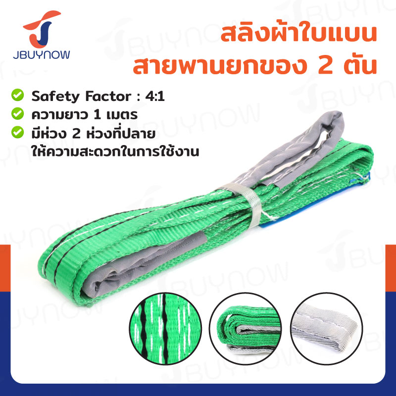 สลิงผ้าใบแบน สายพานยกของ (เซฟตี้ 4:1 มีใบเซอร์) 2 ตัน ยาว 2 เมตร JBUYNOW 2Tx2M