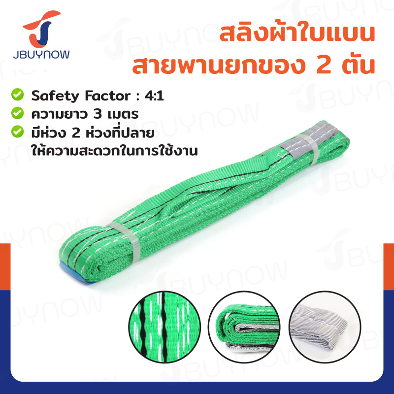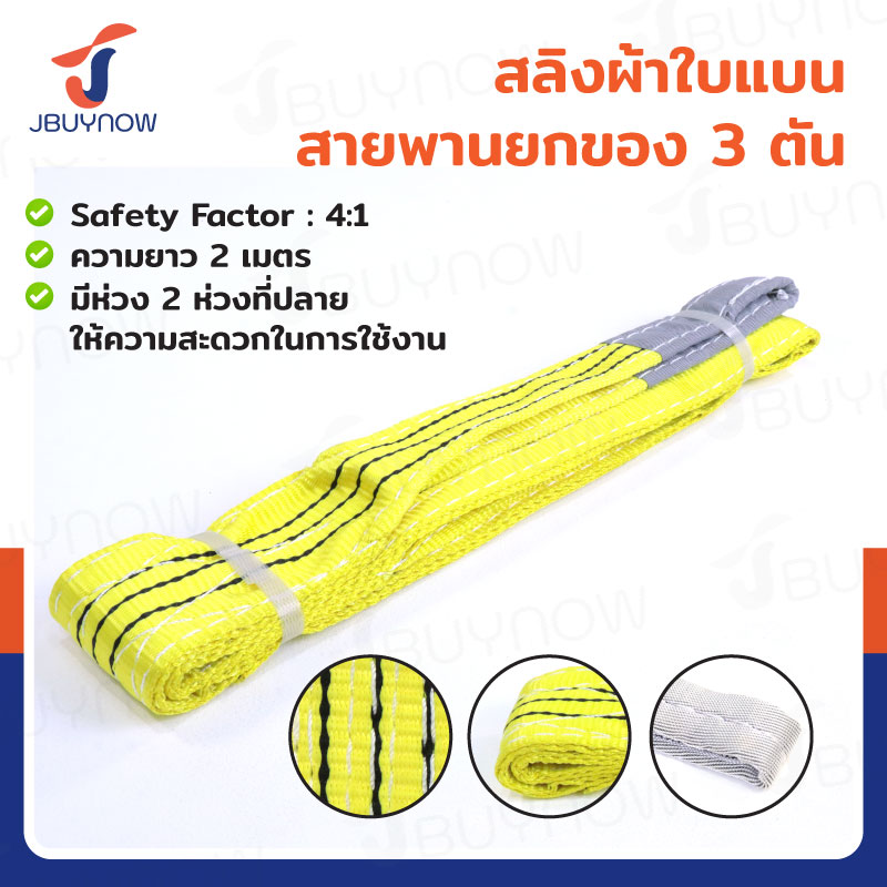 สลิงผ้าใบแบน สายพานยกของ (เซฟตี้ 4:1 มีใบเซอร์) 3 ตัน ยาว 2 เมตร JBUYNOW 3Tx2M