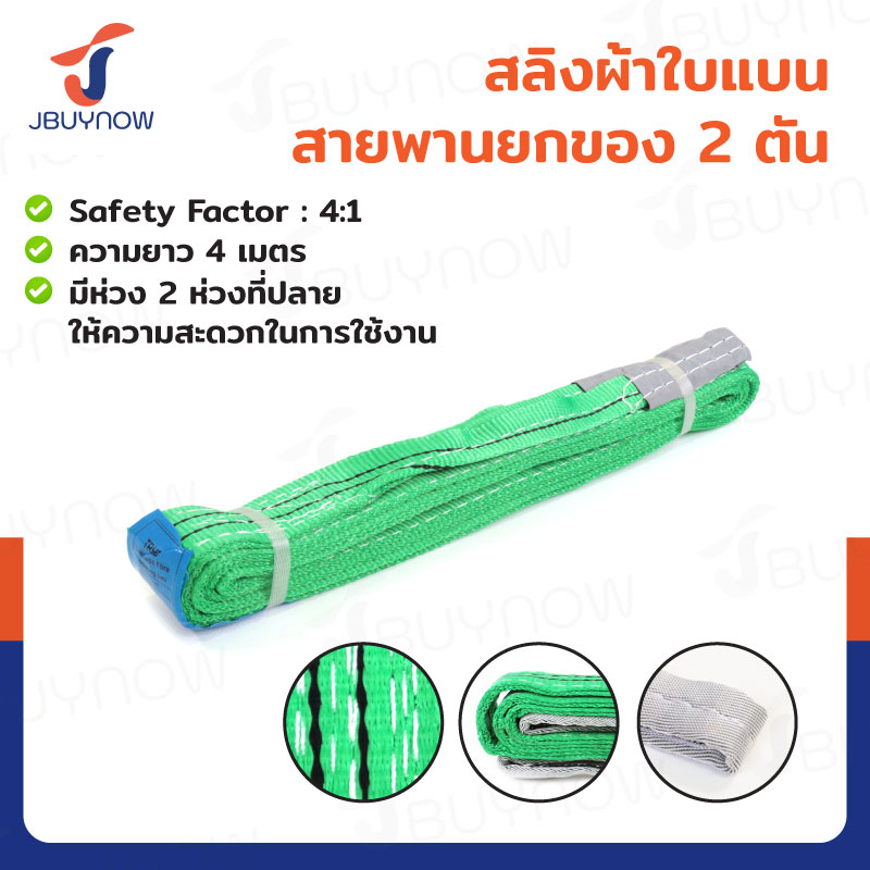 สลิงผ้าใบแบน สายพานยกของ (เซฟตี้ 4:1 มีใบเซอร์) 2 ตัน ยาว 4 เมตร JBUYNOW 2Tx4M