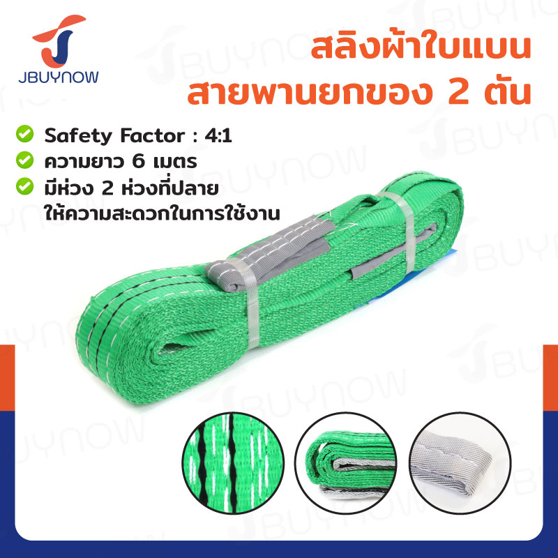 สลิงผ้าใบแบน สายพานยกของ (เซฟตี้ 4:1 มีใบเซอร์) 2 ตัน ยาว 6 เมตร JBUYNOW 2Tx6M