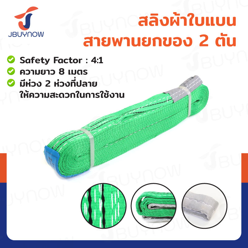 สลิงผ้าใบแบน สายพานยกของ (เซฟตี้ 4:1 มีใบเซอร์) 2 ตัน ยาว 8 เมตร JBUYNOW 2Tx8M
