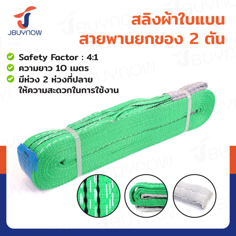 สลิงผ้าใบแบน สายพานยกของ (เซฟตี้ 4:1 มีใบเซอร์) 2 ตัน ยาว 10 เมตร JBUYNOW 2Tx10M