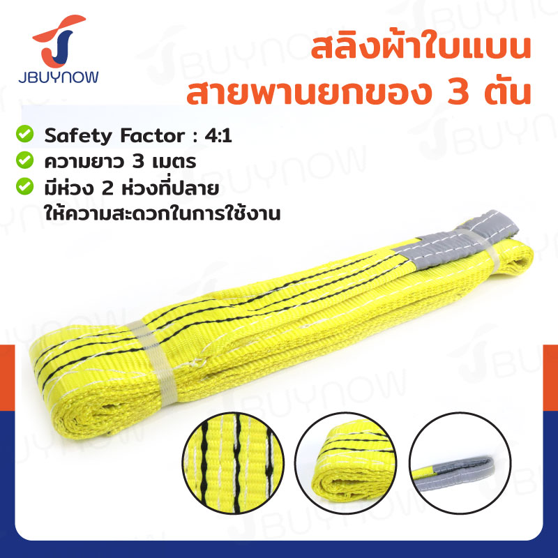 สลิงผ้าใบแบน สายพานยกของ (เซฟตี้ 4:1 มีใบเซอร์) 3 ตัน ยาว 3 เมตร JBUYNOW 3Tx3M