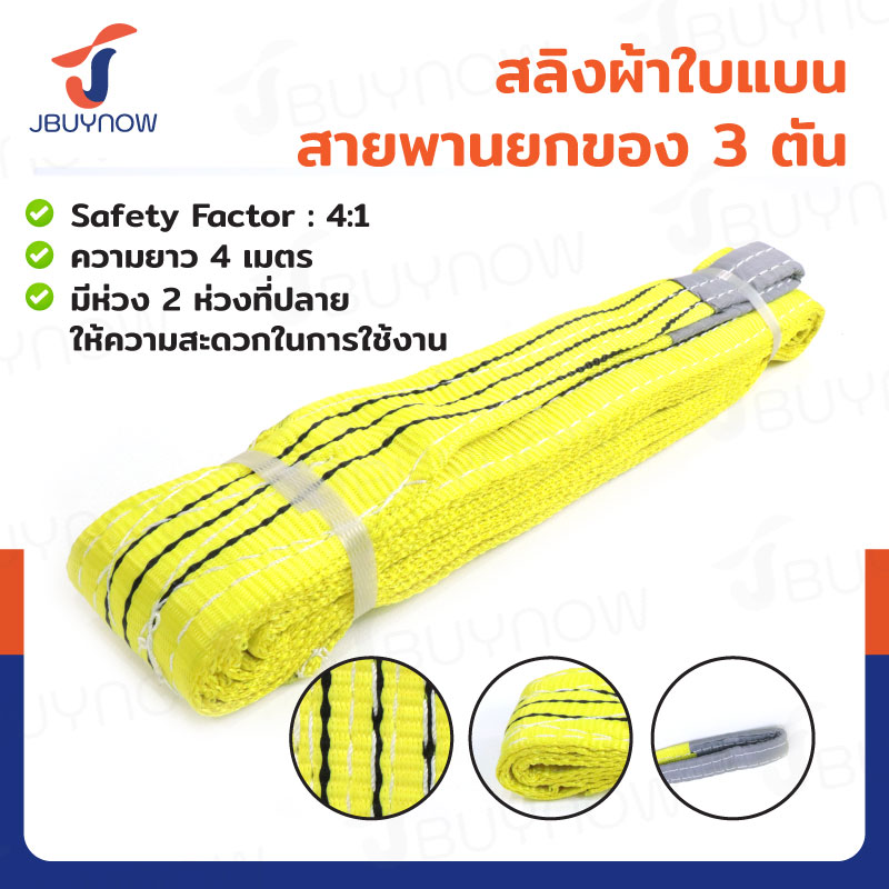 สลิงผ้าใบแบน สายพานยกของ (เซฟตี้ 4:1 มีใบเซอร์) 3 ตัน ยาว 4 เมตร JBUYNOW 3Tx4M