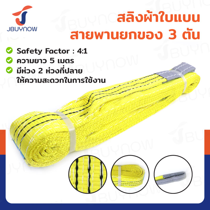 สลิงผ้าใบแบน สายพานยกของ (เซฟตี้ 4:1 มีใบเซอร์) 3 ตัน ยาว 5 เมตร JBUYNOW 3Tx5M