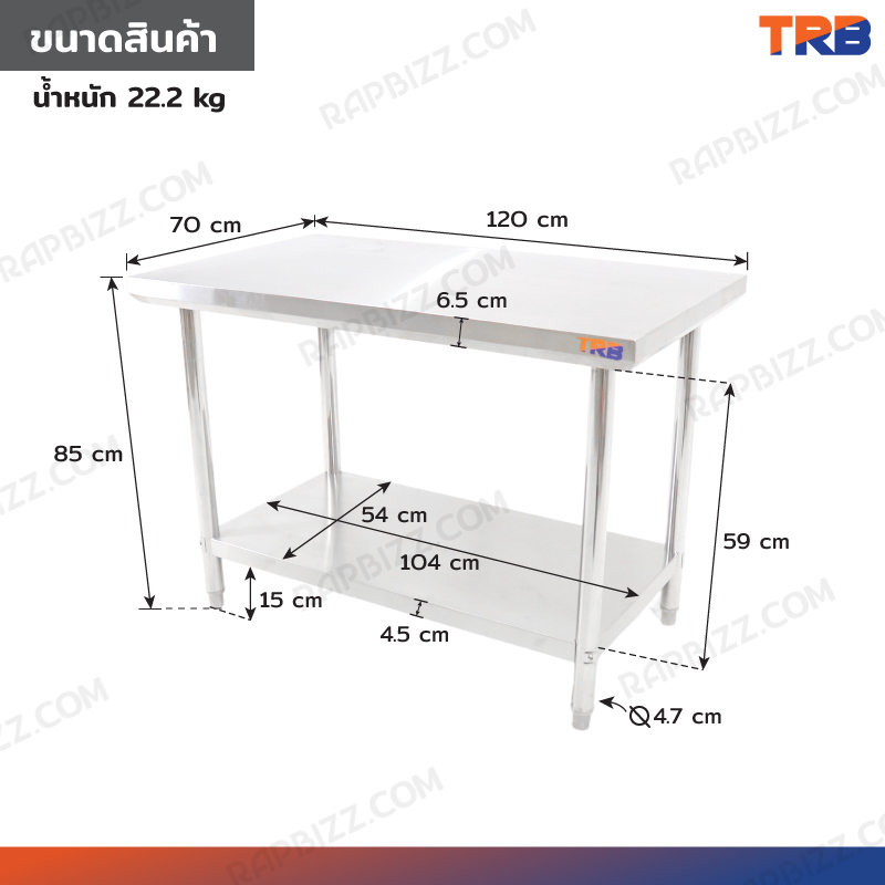 Stainless Steel Table โต๊ะครัวสแตนเลส 70x120x85cm RB230417-4(W70)