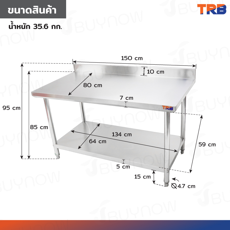 Stainless Steel Table โต๊ะครัวสแตนเลส มีการ์ดกั้น 80x150x95cm RB230417-8(W80)