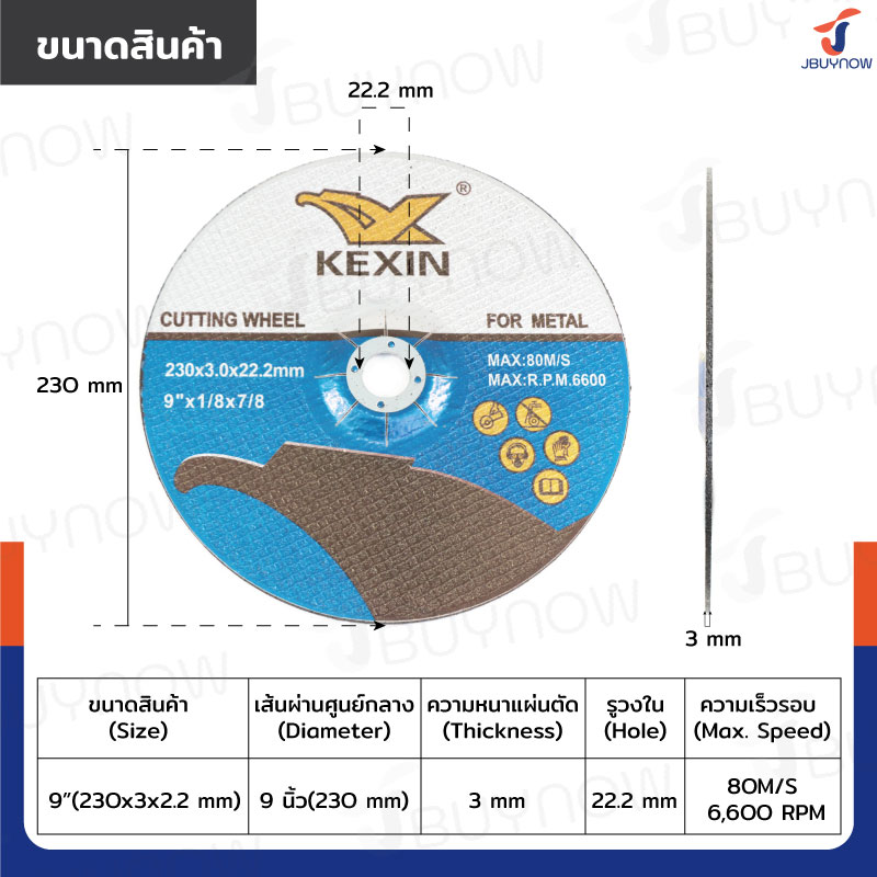 - ขนาดใบตัด: 230x3x22.2 mm