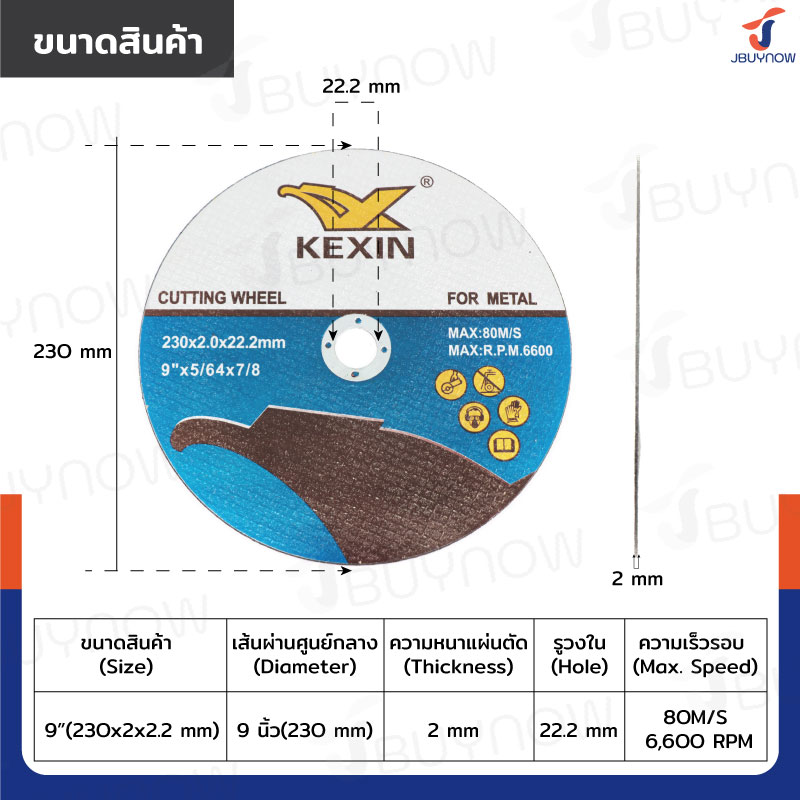 ใบตัดเหล็ก 9 นิ้ว หนา 2 mm 230x2x22.2 mm JBUYNOW TG-025