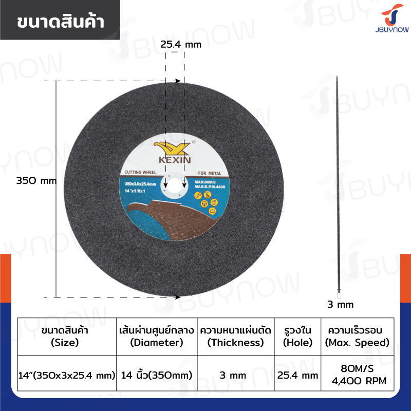 ใบตัดเหล็ก 14 นิ้ว หนา 3 mm 350x3x25.4 mm JBUYNOW TG-031