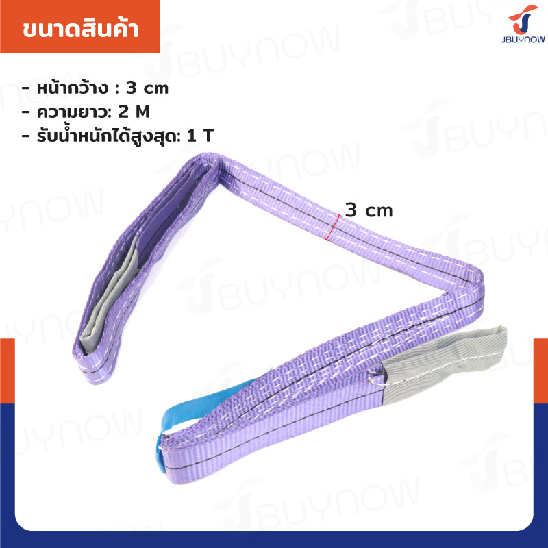 Lifting straps สลิงผ้าใบแบน สายพานยกของ 1 ตัน ยาว 2 เมตร (เซฟตี้ 4:1) JBUYNOW 1TX2M