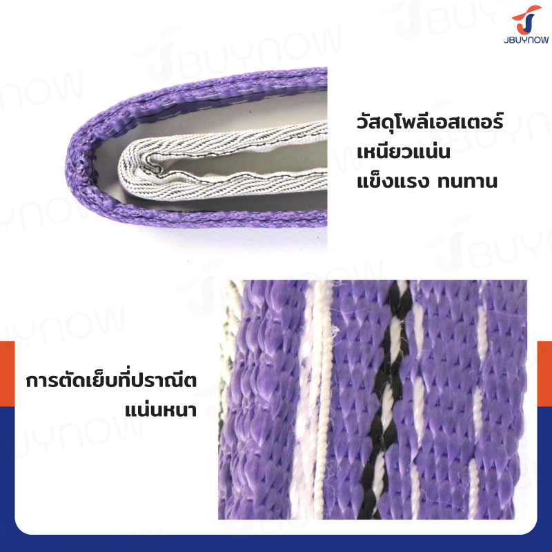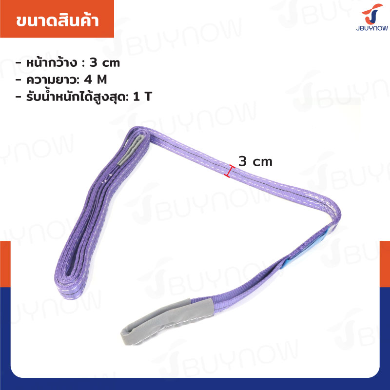 สลิงผ้าใบแบน สายพานยกของ (เซฟตี้ 4:1 มีใบเซอร์) 1 ตัน ยาว 3 เมตร JBUYNOW 1TX3M