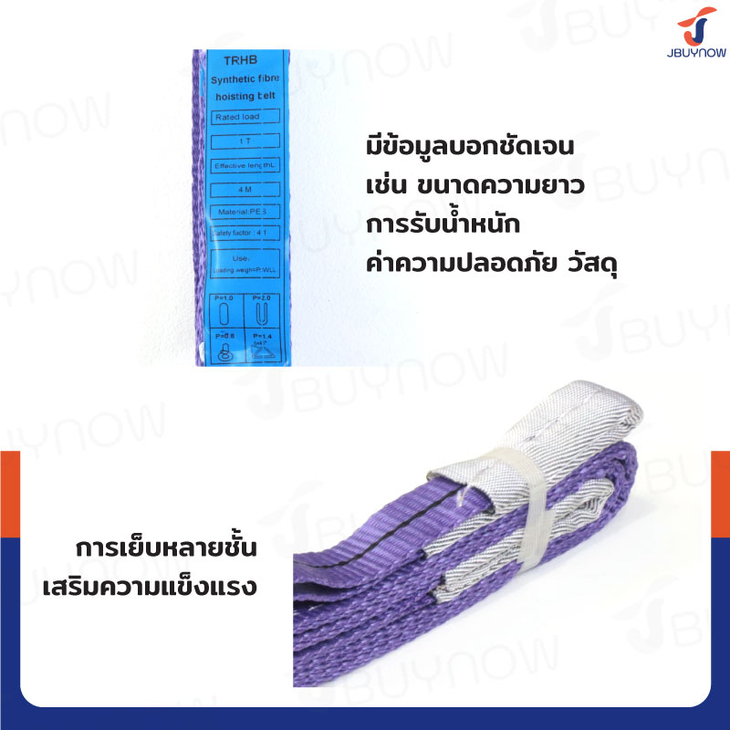 สลิงผ้าใบแบน สายพานยกของ (เซฟตี้ 4:1 มีใบเซอร์) 1 ตัน ยาว 4 เมตร JBUYNOW 1Tx4M