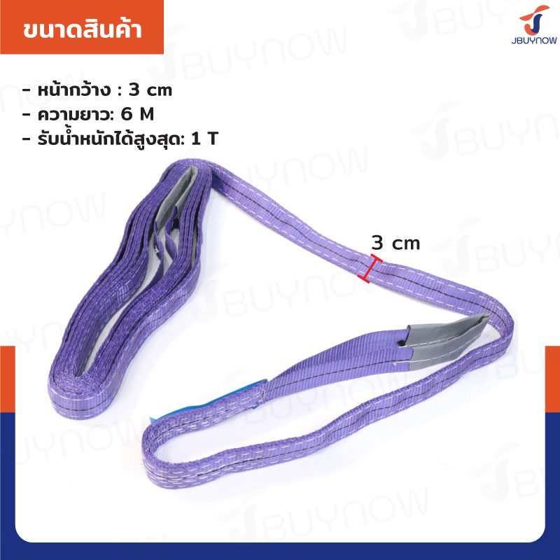 สลิงผ้าใบแบน สายพานยกของ (เซฟตี้ 4:1 มีใบเซอร์) 1 ตัน ยาว 3 เมตร JBUYNOW 1TX3M