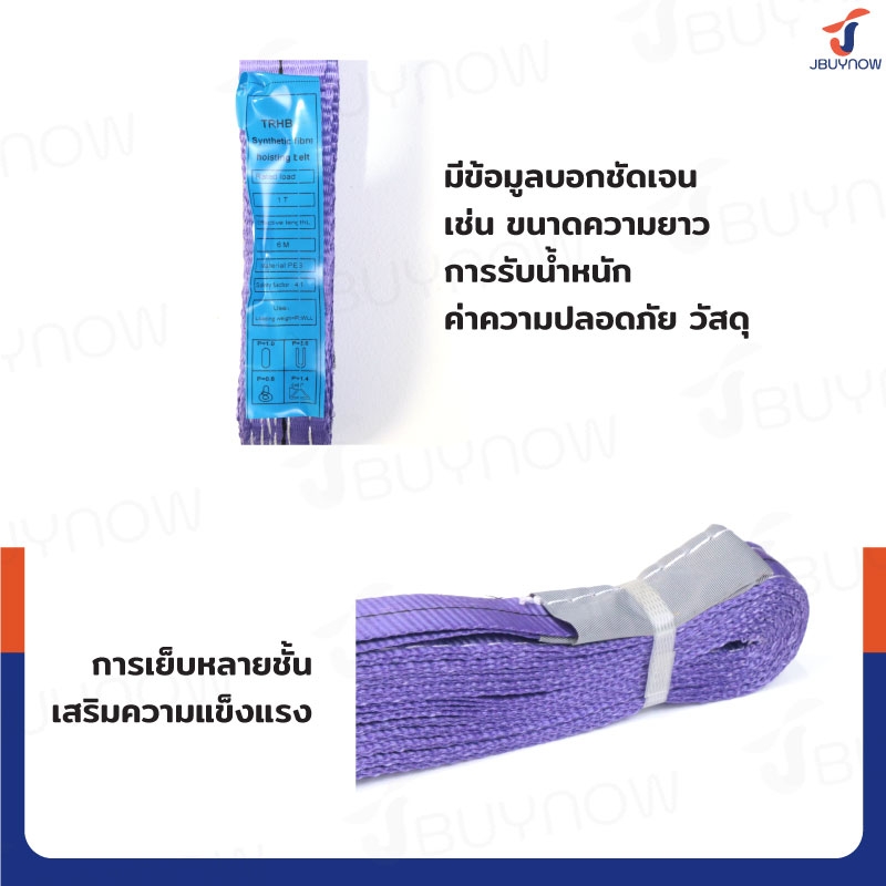 สลิงผ้าใบแบน สายพานยกของ (เซฟตี้ 4:1 มีใบเซอร์) 1 ตัน ยาว 6 เมตร JBUYNOW 1Tx6M