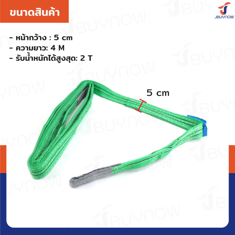 สลิงผ้าใบแบน สายพานยกของ (เซฟตี้ 4:1 มีใบเซอร์) 2 ตัน ยาว 5 เมตร JBUYNOW 2TX5M