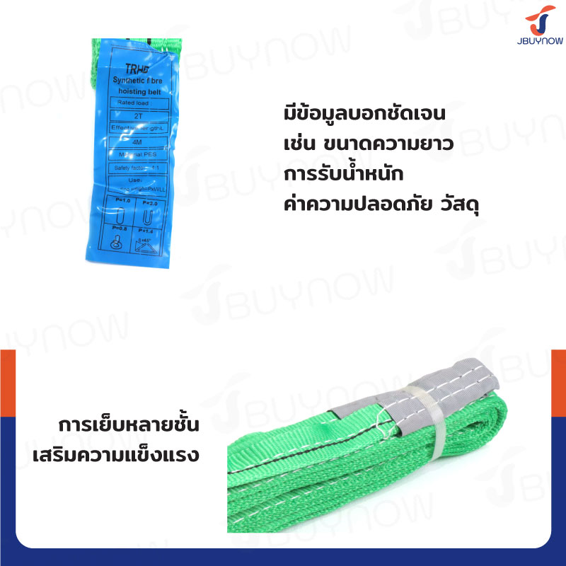 สลิงผ้าใบแบน สายพานยกของ (เซฟตี้ 4:1 มีใบเซอร์) 2 ตัน ยาว 4 เมตร JBUYNOW 2TX4M