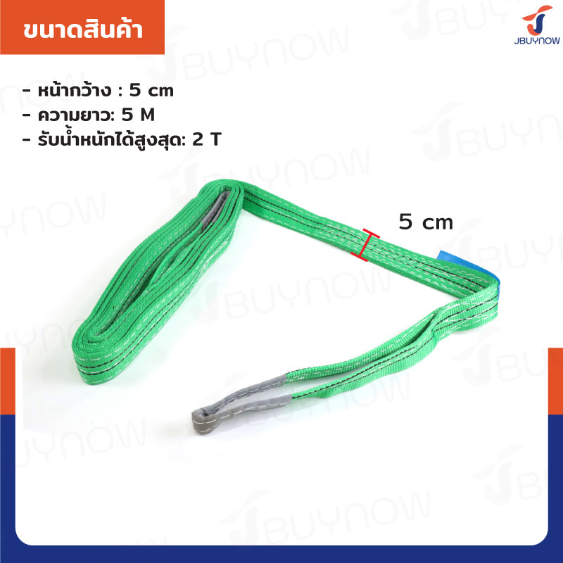 Lifting straps สลิงผ้าใบแบน สายพานยกของ 2 ตัน ยาว 5 เมตร (เซฟตี้ 4:1) JBUYNOW 2TX5M