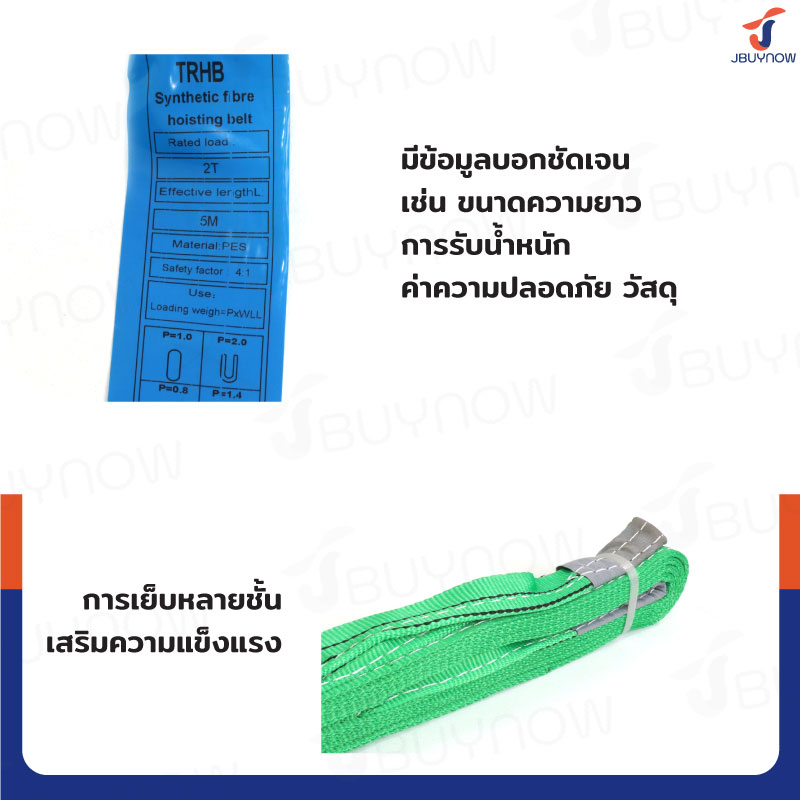 สลิงผ้าใบแบน สายพานยกของ (เซฟตี้ 4:1 มีใบเซอร์) 2 ตัน ยาว 5 เมตร JBUYNOW 2TX5M