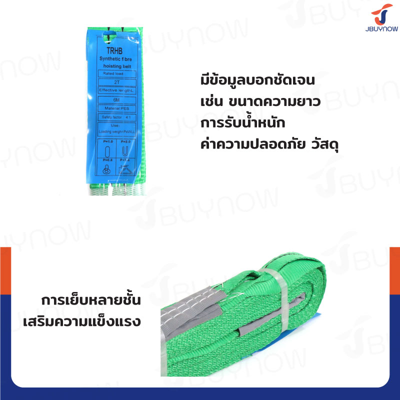 สลิงผ้าใบแบน สายพานยกของ (เซฟตี้ 4:1 มีใบเซอร์) 2 ตัน ยาว 6 เมตร JBUYNOW 2TX6M