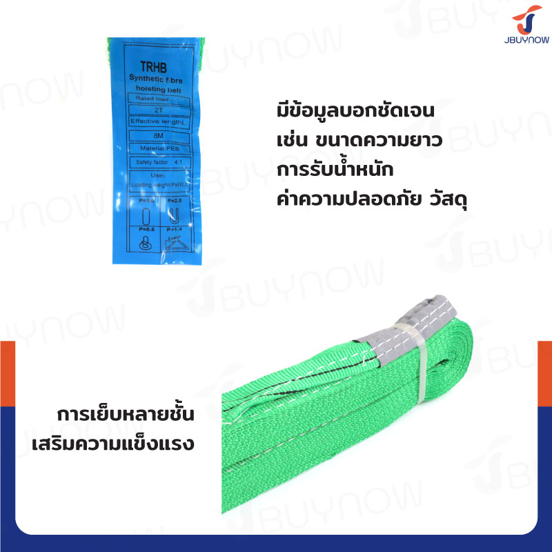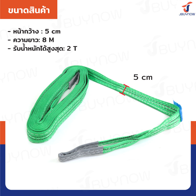 สลิงผ้าใบแบน สายพานยกของ (เซฟตี้ 4:1 มีใบเซอร์) 2 ตัน ยาว 8 เมตร JBUYNOW 2Tx8M