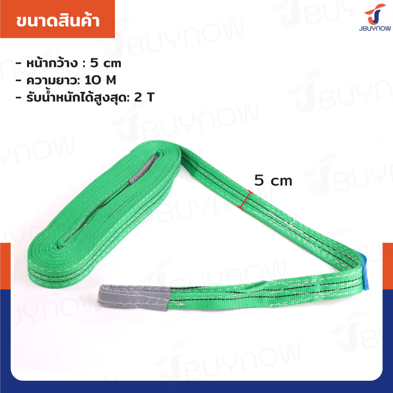สลิงผ้าใบแบน สายพานยกของ (เซฟตี้ 4:1 มีใบเซอร์) 2 ตัน ยาว 5 เมตร JBUYNOW 2TX5M