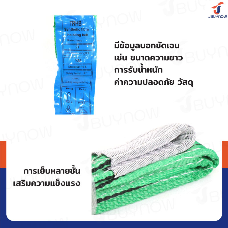 สลิงผ้าใบแบน สายพานยกของ (เซฟตี้ 4:1 มีใบเซอร์) 2 ตัน ยาว 10 เมตร JBUYNOW 2Tx10M