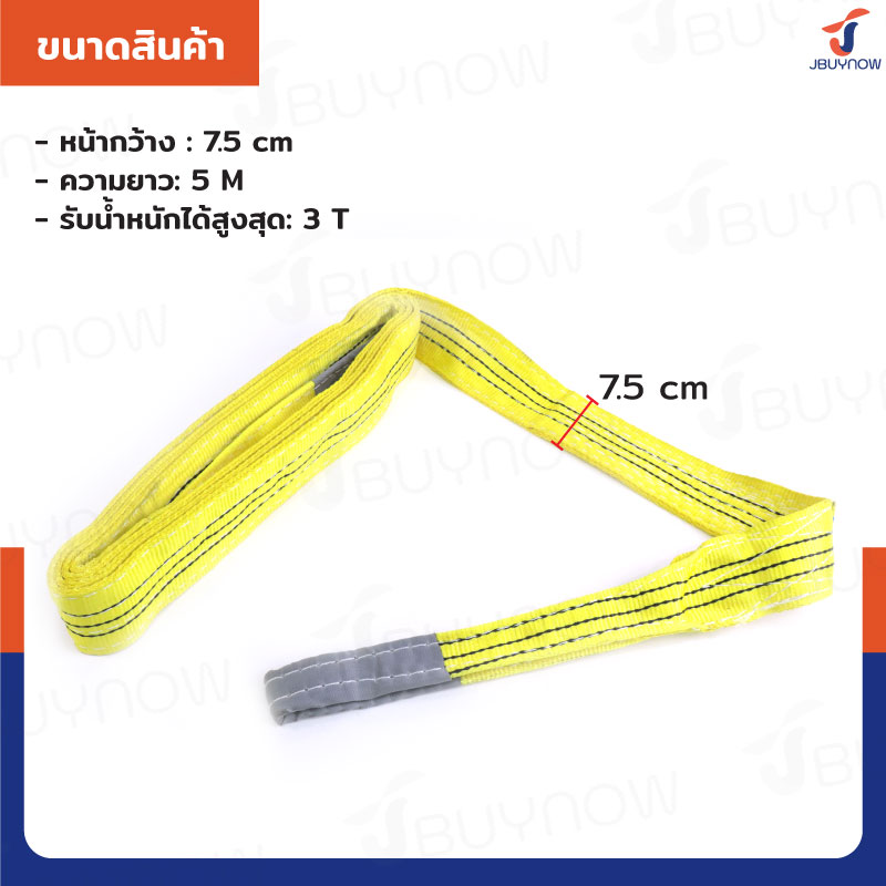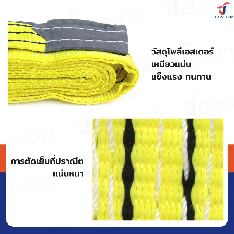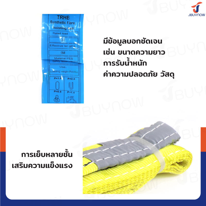 สลิงผ้าใบแบน สายพานยกของ (เซฟตี้ 4:1 มีใบเซอร์) 3 ตัน ยาว 5 เมตร JBUYNOW 3Tx5M