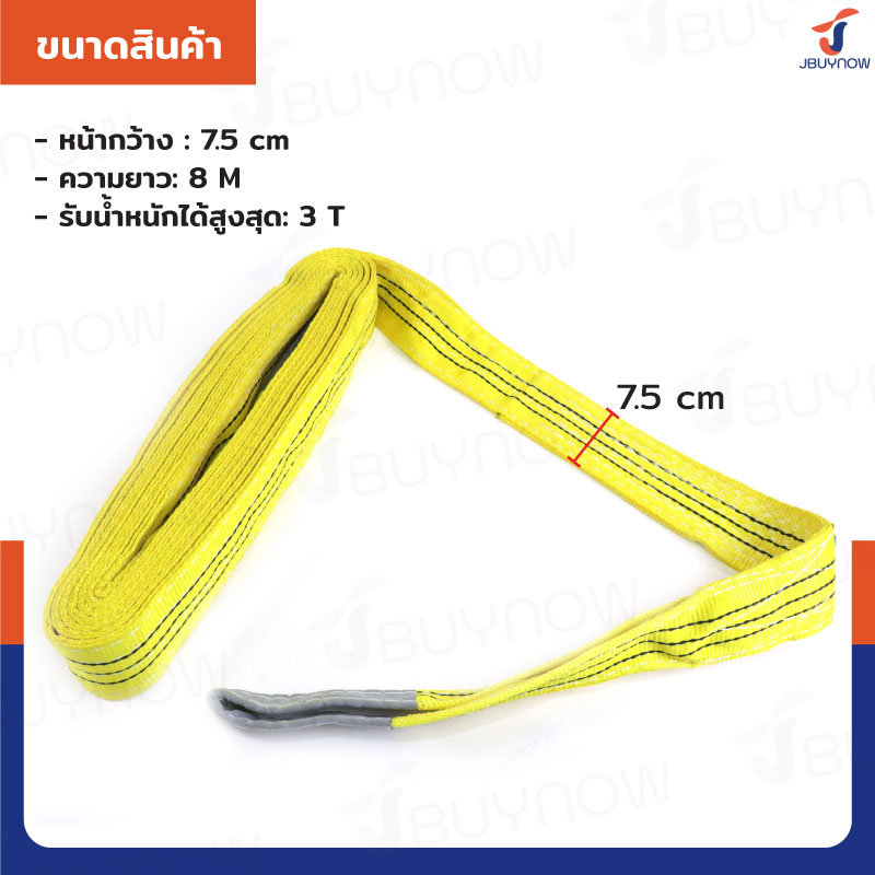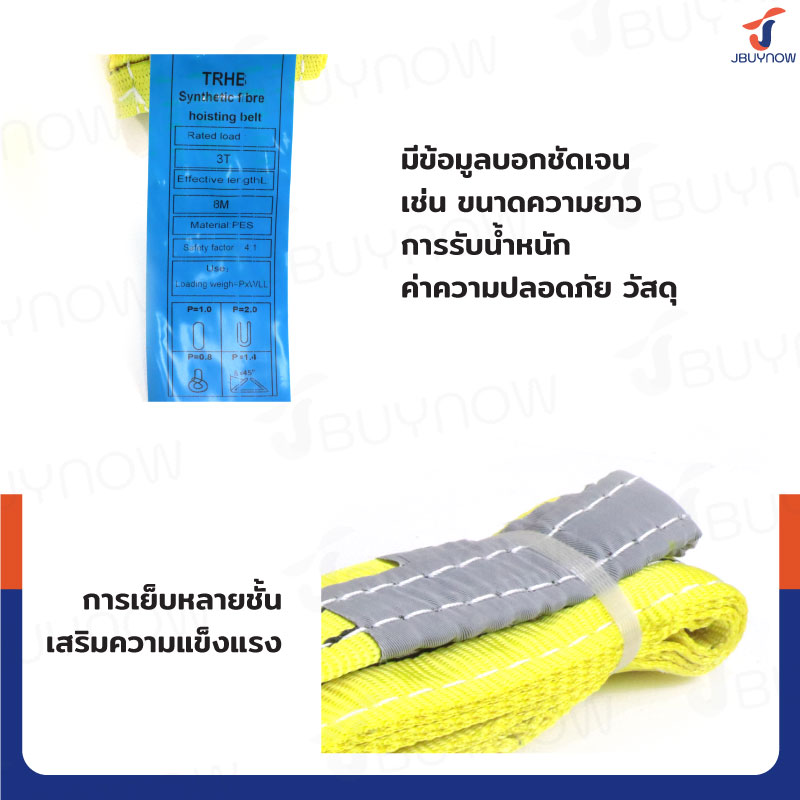 สลิงผ้าใบแบน สายพานยกของ (เซฟตี้ 4:1 มีใบเซอร์) 3 ตัน ยาว 8 เมตร JBUYNOW 3TX8M