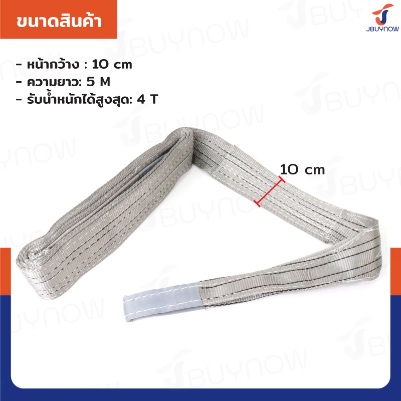 สลิงผ้าใบแบน สายพานยกของ (เซฟตี้ 4:1 มีใบเซอร์) 4 ตัน ยาว 10 เมตร JBUYNOW 4TX10M