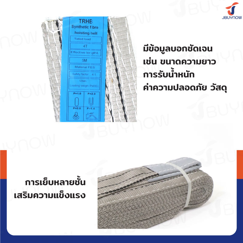 สลิงผ้าใบแบน สายพานยกของ (เซฟตี้ 4:1 มีใบเซอร์) 4 ตัน ยาว 5 เมตร JBUYNOW 4TX5M